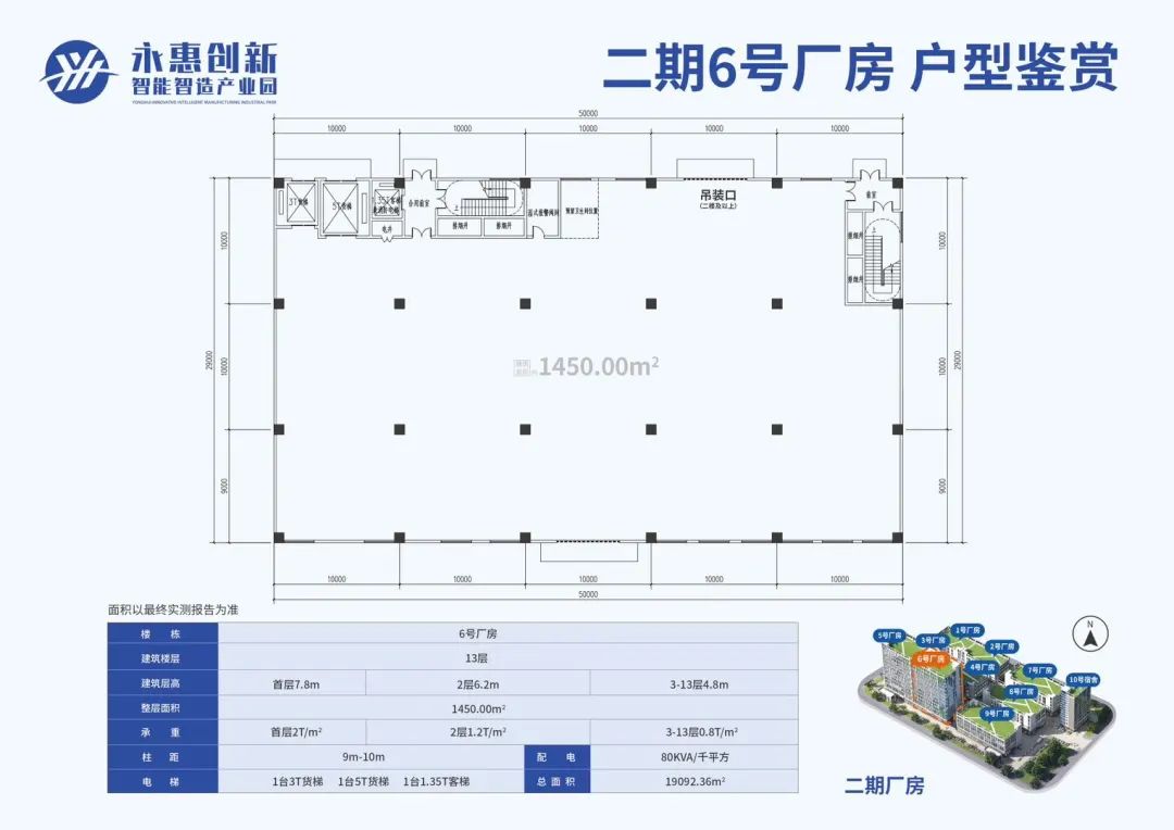 柱网宽:超宽柱网,柱跨10*9米,可灵活布置产线