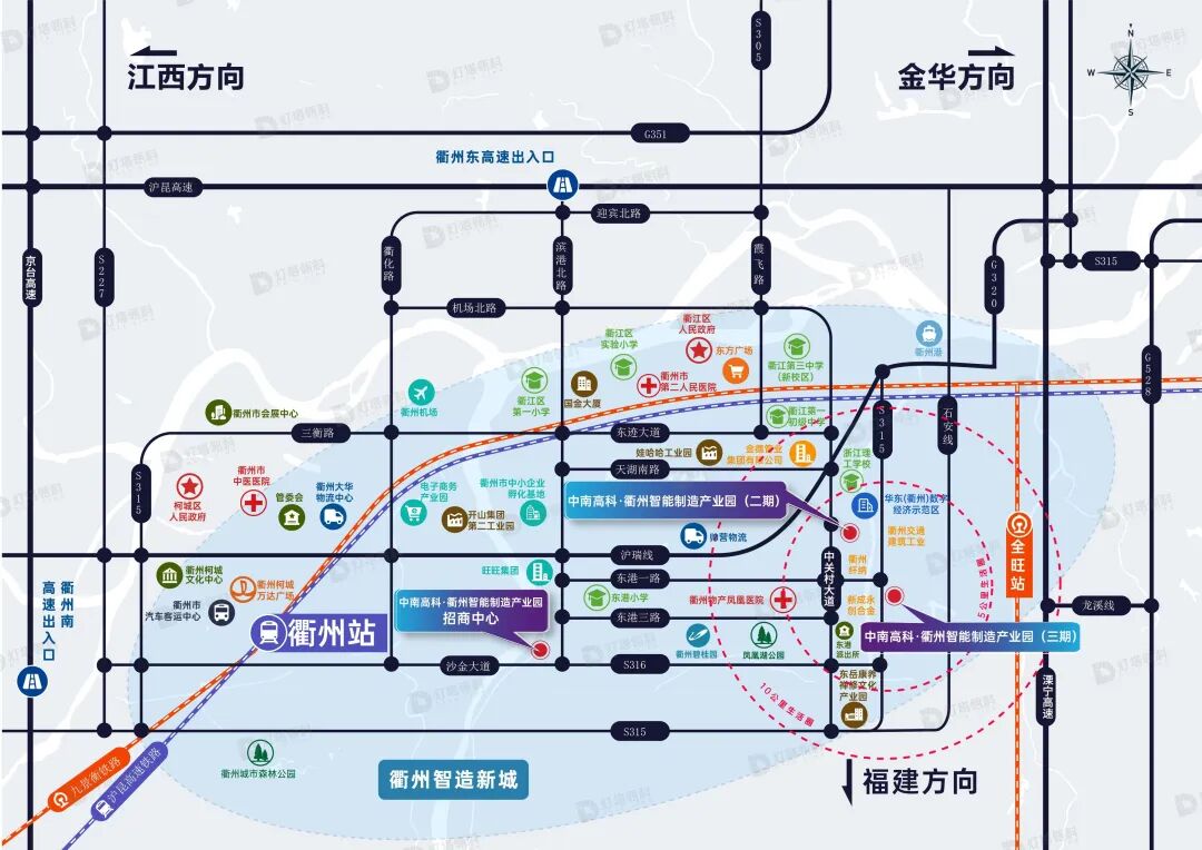 中南高科·衢州智能制造产业园三期位于衢州东港工业区、东港三路315省道边,距离衢州东高速口仅9公里,总占地面积100亩,建筑面积约7.5万平方米。园区产品类型丰富,包括钢结构带夹层厂房、二层半及三层独栋厂房,重点引进智能制造、新材料、新能源等优质企业,致力于打造集生产与研发于一体的先进制造业集聚基地。