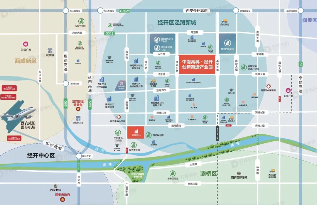中南高科·西安临空产业港 航空厂房研发办公楼出售ZHONGNAN HIGHTECH· 区位交通 ·项目地处我国首个以发展航空城为定位的国家级临空经济区-西咸新区空港新城板块,紧邻机场专用高速,距离西安咸阳国际机场3公里,集航空、轨道、高速公路全方位、立体化综合交通体系,交通快捷便利。· 项目概况 ·中南高科西安临空产业港项目规划用地500亩,总建筑面积约45万㎡,总投资约30亿元;其中一期占地19...