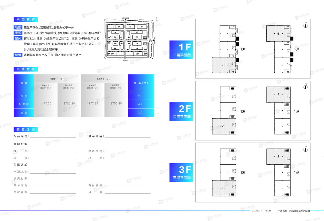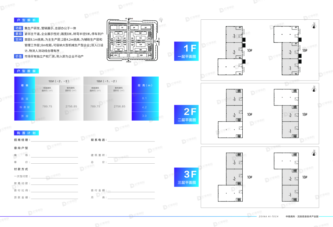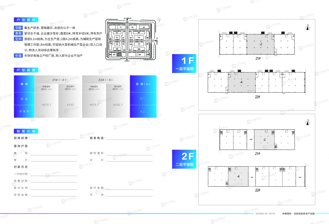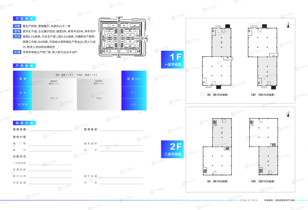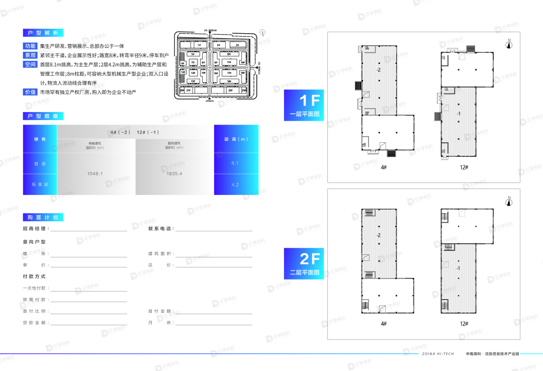 产品灵活适配:多拼厂房设计,二类抗震标准,框架结构,满足研发生产一体化需求。