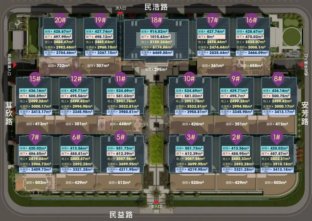 三期双拼独栋销售:910㎡/1050㎡/1230㎡/1600㎡