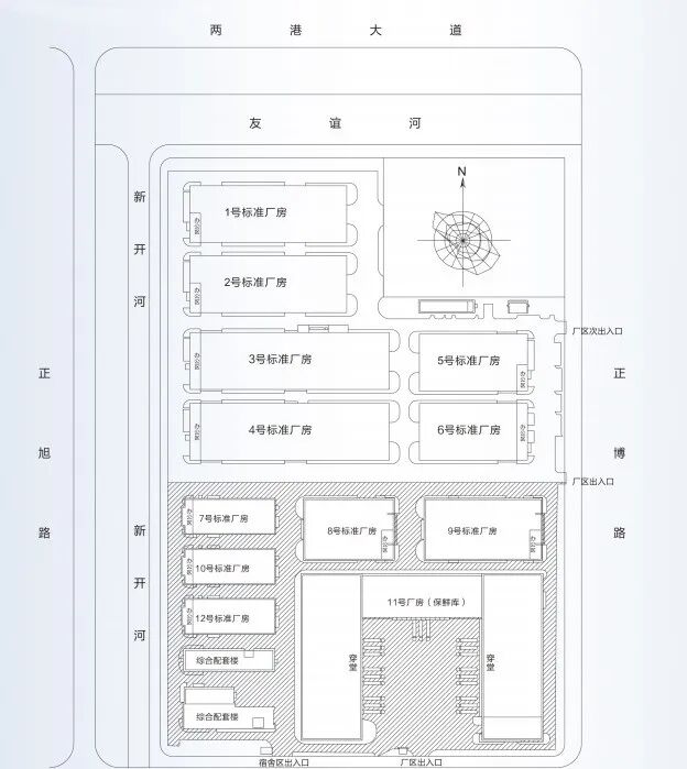 2.层高:多层厂房首层8.1m,单层厂房车间高度11.5m
