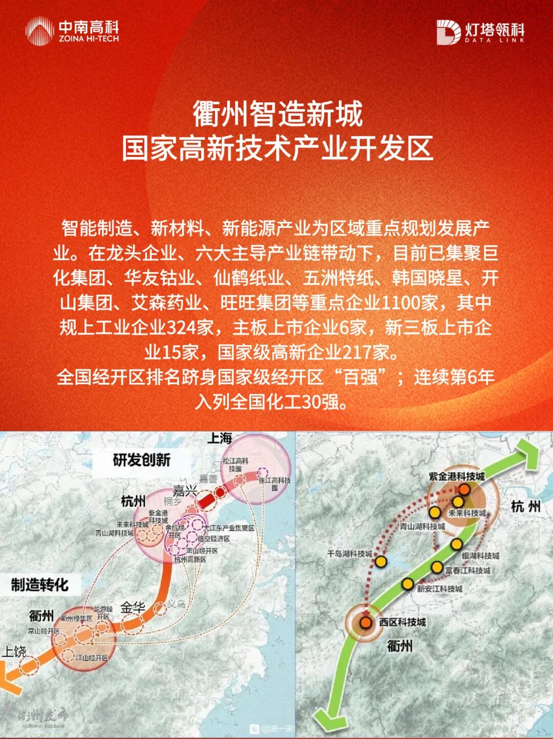 衢州智造新城跻身国家级经开区 “百强”,连续 6 年入选全国化工 30 强,其发展深度契合国家 “制造强国”“创新驱动发展” 战略。在长三角产业协同发展的背景下,衢州作为 “制造转化” 的重要节点,承接杭州、上海等地的产业外溢,政策红利持续释放: