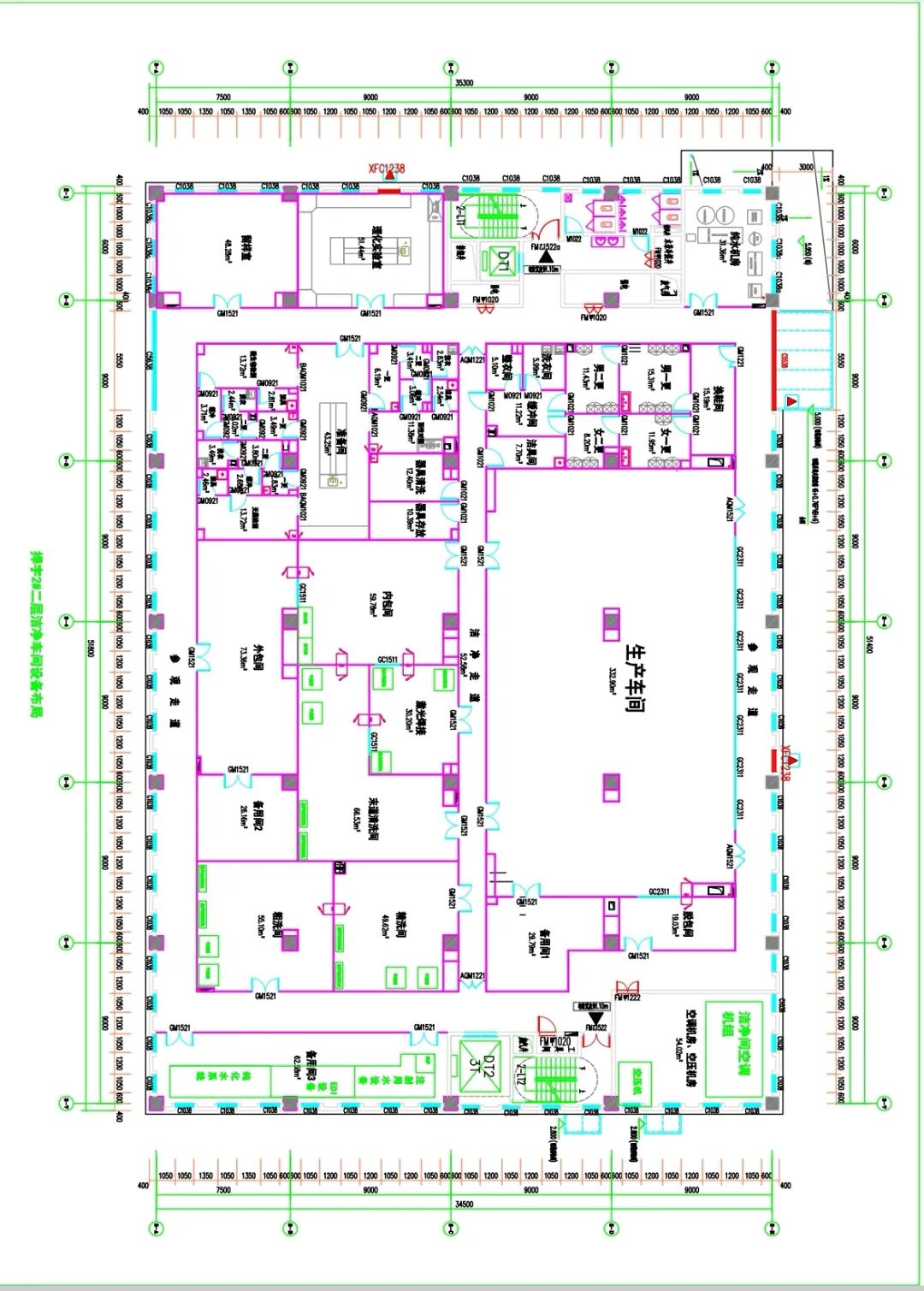 C栋3F洁净室图(966㎡)标准:万级