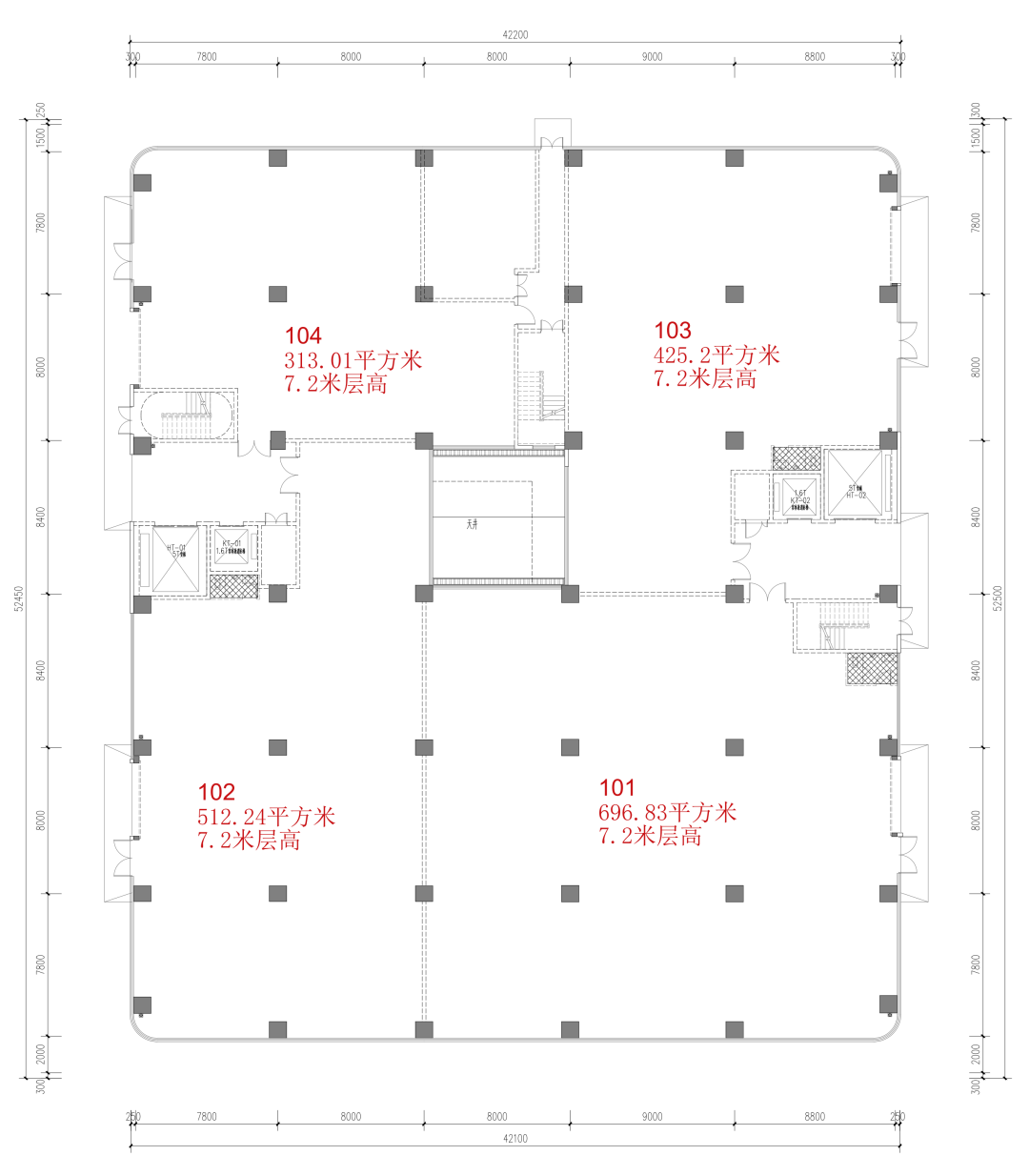 102户:朝南,512.24平方米,报价4400元/平,总价225.3万;